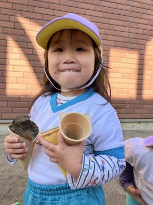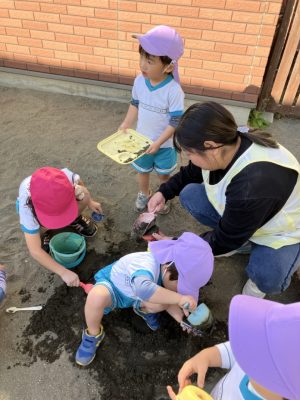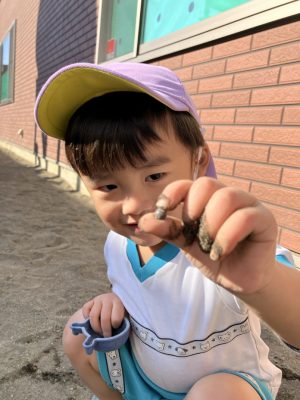 T君が持っているものはダンゴムシ!優しく潰さないように虫と触れ合うことができていますね(^^)